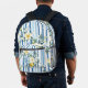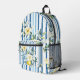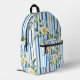 Sac à dos floral élégant et élégant, avec un arrière - plan rayé bleu et blanc éclatant, orné de fines fleurs jaunes et blanches. Parfait pour les sorties décontractées, l'école, ou comme un accessoire fonctionnel mais à la mode.