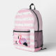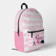 Sac à dos personnalisé et mignon avec une aquarelle flamingo et des rayures roses et blanches avec un monogramme en option (supprimer le monogramme ou changer de nom dans EDIT comme souhaité). ASSISTANCE : Pour obtenir de l'aide sur la modification ou la personnalisation de la conception, le changement de couleur, le redimensionnement, le transfert de la conception vers un autre produit ou si vous souhaitez coordonner des éléments, contactez le concepteur AVANT LA COMMANDE via l'onglet MESSAGE Conversation Zazzle ci-dessous ou envoyez un courriel à makeitaboutyoustore@gmail.com.