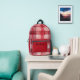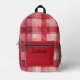Un sac à dos plaid en aquarelle rouge amusant avec un nom personnalisable, parfait pour rendre à l'école ou le début de l'université mémorable.
