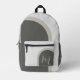 Ce sac à dos personnalisé a une ambiance tendance et élégante avec ses formes simples d'arc minimaliste dans des couleurs neutres de brun olive et vert sauge doux contre un arrière - plan neutre plus léger. Un gros monogramme sur la poche ajoute une pop de style branchée sur cet élégant look design qui sert de marque personnelle. Personnalisez avec votre monogramme initial.