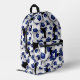 Ce sac à dos de football cool présente un motif aléatoire de différentes tailles, des balles de football bleues et blanches tournées de chaque côté sur un arrière - plan noir - personnaliser avec le monogramme du joueur de football - par katz_d_zynes