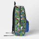 Ajoutez un nom pour créer un cadeau personnalisé qui est parfait pour les propriétaires australiens. Ce sac à dos présente une illustration réaliste d'un chien Shepherd australien qui aboie contre un arrière - plan bleu dans la poche avant avec le reste du sac décoré d'un motif d'Australiens et de feuilles tropicaux.
