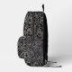 Modèle de sac à dos avec un motif de roses noires et blanches et une étiquette à personnaliser.