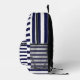 Sac à dos imprimé bleu bleu marine conçu par Nisha Prabhu. Faites un voyage de style avec notre sac à dos imprimé à rayures blanches de marine. Ce sac à dos est un classique intemporel, avec un motif captivant de rayures bleu marine et blanc qui évoque un sentiment d'aventure nautique. C'est un parfait mélange de sophistication et de praticité, conçu pour vous accompagner dans tous vos déplacements quotidiens. Que vous soyez en voyage de travail, à l'école ou pour une escapade de fin de semaine, ce sac à dos est un compagnon fiable avec ses spacieux compartiments et sa construction durable. Les rayures bleu marine et blanc apportent une touche d'élégance et de polyvalence à toute tenue, ce qui en fait un choix polyvalent et élégant pour toutes les occasions. Découvrez l'attrait de la mer avec notre sac à dos imprimé bleu bleu marine et faites une déclaration de mode qui n'est jamais hors de style.