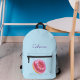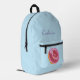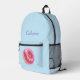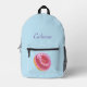 Cute blue Backpack featuring a pink donut in watercolor. It’s very easy to customize, with your personal details.
