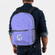 Bleu carrés avec sac à dos monogramme. Un cercle de carrés blancs bricheusement tient la première pour personnaliser votre objet. Idéal pour retourner à l'école, faire une randonnée de jour ou simplement être dehors et à peu près.