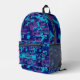 Sac à dos imprimé en camouflage bleu foncé et violet personnalisé. Personnalisez ce modèle avec votre nom et motif carrelé si vous voulez quelque chose de différent du camouflage. Customisez-le davantage pour tout autre changement.