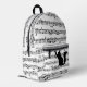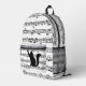 Silhouette d'un chat ludique sur la composition de partitions blanches et noires.
