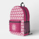 La conception du sac à dos pour les filles mignonnes comporte deux lignes de texte personnalisables pour "Pickleball Princess" ou une citation personnalisée au choix et un nom ou un texte personnalisé dans une police moderne intemporelle en arc de cercle au-dessus et en dessous d'une image d'une balle de pickleball rose clair. Le fond sur le devant et les côtés est assorti de rose foncé et de blanc colorés. Ajoutez une ou deux initiales au centre de la conception sur l'image de la balle. Les combinaisons d'initiales plus grandes peuvent devoir être réduites pour l'espacement. TOUTES les couleurs de cette conception sont personnalisables, y compris les trous dans la balle ! Contactez-moi pour des questions ou des demandes de couleurs personnalisées.