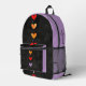 Il s'agit d'un design dominant noir et violet avec des coeurs colorés alignés de dos en dos. Sur le côté, vous pouvez customiser le nom. Ce sac est une excellente option cadeau pour une jeune écolière.
