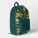 This rugged backpack features a cool all-over print on a dark green background, covered with a dynamic pattern of excavators, dump trucks, and road signs in bold yellow and orange tones. The customizable name "Benjamin" on the front pocket adds a personal touch, matching the black hardware for a sleek, coordinated look.