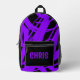 Personnalisez ce sac à dos cool noir et violet avec votre nom ou votre texte personnalisé. C'est un sac à dos unisexe pour les garçons, les filles et les enfants. Des options de modification et de couleur sont disponibles.