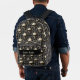 Des crânes beiges anciens et usés au milieu d'un motif damassé beige et gris argenté créent un sac à dos gothique spectaculaire. Personnalisez avec votre nom dans une bande noire en face. Parfait pour la maison ou l'école.