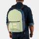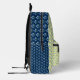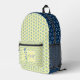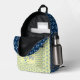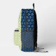 Un sac à dos avec des crocus bleus et des fleurs de coquilles bleues. Les images, l'arrière - plan et le texte peuvent être personnalisés. Oeuvre originale de W.B.