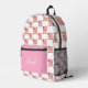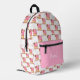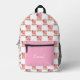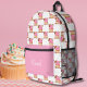 Un somptueux sac à dos personnalisé avec des cupcakes à la vanille rose surmontés de biscuits à puce au chocolat, entourés de bonbons au chocolat et d'accents colorés.