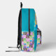 A blue backpack full of toys. Toys in colorful boxes on the front bag + sides and bigger versions of the toys at the back. All toys from the books of "The Underground Toy Society"!