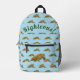 Poche avant design avec l'image d'une tortue avec une tortue bébé. Le motif de cette image est affiché partout. Arrière - plan est bleu pour donner l'impression d'eau. Le mot "Juste !" s'affiche comme une arche en vert et est personnalisable.