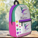 Express votre passion pour la danse avec ce sac à dos vibrant avec une silhouette étonnante d'une danseuse de ballerine! Les couleurs accrocheuses du dégradé et la pose gracieuse en font un accessoire élégant et unique. Personnalisez-le avec un nom pour créer un cadeau spécial pour tout danseur de ballet ou passionné de danse lyrique. Parfait pour transporter du matériel de danse, des fournitures scolaires ou des articles de première nécessité. La silhouette du danseur présente un gradient distinct qui passe d'un violet profond aux pieds à un turquoise clair aux bras. Cela crée un effet dynamique et dynamique. Les petits coeurs sont dans un motif répétitif de rose, de violet et d'un vert turquoise, ajoutant une bordure ludique et colorée. Les panneaux latéraux du sac à dos sont d'un rose solide, violet et d'un vert turquoise-foncé solide. La poche à fermeture éclair a une bande violette, et il y a aussi une zone rayée au fond du sac, ajoutant à son design unique. Montrez votre amour pour la danse avec ce sac à dos unique ! Son nom est fièrement affiché dans une police de coordination tri-couleur !