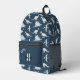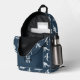 Un sac à dos avec des formes dinosaures dans les tons bleus sur un arrière - plan bleu marine. Personnalisez facilement le texte. Vous pouvez laisser ou laisser le texte en blanc. :) Idéal pour les vacances d'été ou comme sac d'école et plus - Kate Eden Art
