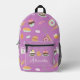 Sac à dos motif de boulangerie moderne et chic. Le design comprend des outils de boulangerie amusants et des motifs alimentaires. Toutes les illustrations sont dessinées à la main par Moodthology Papery.