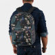 Sac À Dos Imprimé Elégant Peacocks Turquoise & Fleurs Magnolia Noir