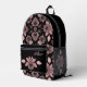 Ce sac à dos est doté d'un élégant motif en dentelle romantique en rose doux sur arrière - plan noir. Magnifique sac à dos personnalisable pour toute activité et école de plein air!