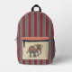 Sac À Dos Imprimé Eléphant et Dusty Blue Red Stripes avec Monogramme