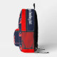 Sac à dos pour garçons de train à vapeur roux. Personnalisez avec le nom de votre enfant, parfait pour la bibliothèque ou l'école. Il lit actuellement Daniel et Daniel sur la plaque de chaudière plus Daniel - Super Ferroequinologue le long du rabat supérieur. Une partie de la gamme de train à vapeur graphique pour enfants. La couleur Arrière - plan peut également être changée pour votre propre choix de couleur actuellement en bleu foncé. Un cadeau parfait pour les garçons à emmener à l'école ou comme cadeau à un ventilateur de train ou de transport ferroviaire. Art graphique et design original du train à vapeur par Sarah Trett exclusivement pour www.mylittleeden.com sur zazzle.