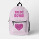 Sacs de sac à dos pour femme de chambre personnalisée pour le mariage amusant et élégant avec arrière - plan rose avec un coeur rose sur la poche, et personnalisée avec le nom de chaque femme de chambre. Grand cadeau pour l'équipe de la mariée.