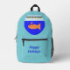 Ce sac à dos impressionnant présente un poisson rouge de Noël orange amusant portant un chapeau santa festif. Le poisson rouge nage dans l'eau bleue de son bol de poisson rouge. Le poisson a décoré le haut du bol avec des drapeaux rouges et verts qui épellent le message "Merry Fishmas". Ce poisson de saison amusant est prêt pour une grande fête de Noël. Il y a du texte personnalisé pour que vous puissiez inclure un message. Le message par défaut indique Joyeuses Fêtes.