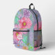 Entrez dans un monde de couleurs vives et de conceptions complexes avec ce sac à dos imprimé personnalisable. Le sac à dos est une toile aux teintes pastel douces, méticuleusement ornée d'un imprimé floral fascinant qui promet de faire de chaque voyage une affaire pittoresque. L'imprimé est constitué d'une symphonie de fleurs éclatantes, dont de grands pavots roses et de petites marguerites violettes, chaque pétale et chaque feuille avec des traits délicats qui donnent vie à ce chef-d'oeuvre portable. Les fleurs sont disposées contre un arrière - plan bleu pastel doux qui fait apparaître les couleurs, créant un contraste visuellement étonnant. En plus de la conception sont des feuilles verts entrecoupés entre les fleurs, améliorant l'esthétique naturelle du sac à dos. Une petite étiquette ovale blanche avec un nom personnalisable et une lettre initiale est visible dans la poche avant centrale du sac, ajoutant une touche d'élégance et de sophistication.