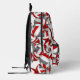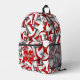 Ce sac à dos de volley-ball cool est équipé d'un motif aléatoire de différentes tailles, des volleyballs rouges, gris et blancs tournés à chaque sens sur un arrière - plan blanc - personnaliser avec le nom de l'athlète et le numéro de maillot - par katz_d_zynes