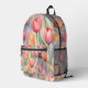 Sac À Dos Imprimé Fleurs de tulipe d'aquarelle initiale personnalisé
