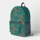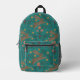 A whimsical pattern featuring leaping brown rabbits surrounded by yellow, pink, and red flowers, green leaves, and dotted accents on a teal background.