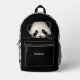 Ce mignon sac à dos a l'image d'un adorable petit ours en panda qui regarde au-dessus d'un mur. L'ours a manifestement marché sur les côtés et les sommets, parce qu'il y a ses traces! La poche noire ci-dessous a du texte en argent. Vous pouvez placer votre nom dans le champ texte, ou peut-être penser à quelque chose d'amusant à dire sur la situation difficile de l'ours. C'est à vous de décider ! Vous pouvez également modifier la police et la taille du texte en choisissant Edition (Edit Design).