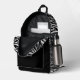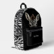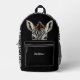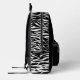 Ce mignon sac à dos a l'image d'un adorable zèbre rayé qui surplombe un mur. Les côtés et le dessus ont un motif zèbre noir et blanc, tandis que la poche noire solide a du texte en argent. Vous pouvez placer votre nom dans le champ texte, ou peut-être penser à quelque chose d'amusant à dire sur la situation difficile du zèbre. C'est à vous de décider !