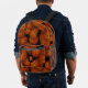Ce sac à dos de basket amusant et sportif présente un motif aléatoire de balles de basket de taille variée tournées de chaque côté sur un arrière - plan noir - personnaliser avec le monogramme du joueur de basket - par katz_d_zynes