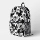 Ce sac à dos de football amusant et sportif comporte un motif aléatoire de balles de football de taille variée tournées de chaque côté sur un arrière - plan noir - personnaliser avec le monogramme du joueur de football - par katz_d_zynes