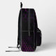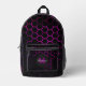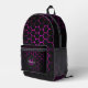Noir rose chaud neon honeycomb géométrie Monogramme imprimé sac à dos. Personnalisez avec votre initiale et votre nom. Sacs d'école cool unique pour filles. Hot rose rose rose brillant brillant élégant géométrique lignes hexagone noir lignes motif graphique. Design cool gris, noir et rose Accessoires pour femmes audacieuses.