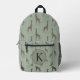 Sur ce sac à dos élégant se trouvent des girafes de gloire dorée dans un motif répétitif sur un fond vert sauge sombre pour plus de pop. Vibes chic et modernes. Peut être personnalisé avec une lettre au milieu dans une sphère verte sur la poche avant