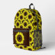Sac à dos dans un motif de grands tournesols jaunes dorés, avec centres chocolat profond, accentué de noir