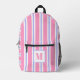 NewParkLane - Magnifique sac à dos personnalisé pour enfants, avec un motif fantaisiste aux rayures roses chaudes, blanches et violettes, et un modèle texte pour votre monogramme. Un grand cadeau de retour à l'école pour toute jeune fille! Facile à customiser à Zazzle avec votre propre texte pour un design personnalisé. Tous les styles de texte, couleurs (arrière - plan & typographie) et tailles peuvent être modifiés selon vos besoins. Découvrez cette collection pour les objets correspondants !