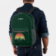 Un sac à dos en randonnée cool avec un coucher de soleil de forêt verte pour tout le groupe lors d'une sortie nature ou d'un voyage en camping. Ce cadeau personnalisé présente un bel horizon avec des arbres pour un randonneur ou un camping-car.