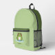 Un sac à dos vert avec une illustration d'une grenouille mignonne sur son étang et le texte personnalisable ci-dessous! Parfait pour un enfant ou un ami qui aime les animaux !