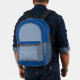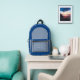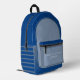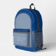 Sac à dos gris bleu avec un design simple avec quelques rayures. Ajoutez votre devis personnalisé.