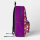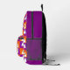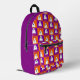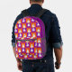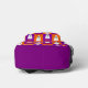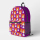 Ce sac à dos impressionnant est doté d'un mignon petit fantôme blanc aux yeux noirs et d'une bouche noire ouverte. Chaque fantôme est posé sur un carré orange ou un carré violet et chaque carré contient du texte orange ou violet qui dit Boo ! Le résultat est un motif de carrés et de fantômes.