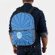 Hanoukka bleu sunburst fractal avec sac à dos monogramme. Un cercle de carrés blancs crigileux tient la première pour personnaliser votre art numérique généré par votre ordinateur. Idéal pour retourner à l'école, randonnée de jour, ou simplement être dehors et autour. Un don réfléchi, à tout moment.