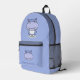 Un joli hippo sur un sac à dos bleu avec un texte personnalisable. Parfait pour l'école, le bureau ou juste pour les promenades. Vous pouvez aussi faire un cadeau à un ami qui aime les animaux de Kawaii!