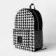 Pack in style with this elegant monogrammed backpack. It's black and white houndstooth pattern offers a sleek and professional look and feel. Personalize the monogram with your initial for a unique gift. A perfect gift for both men and women for back to school or a travel bag.