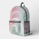 Joli Aquarelle couleur pastel arc-en-ciel Joli Aquarelle rose Arc-en-ciel rayures Monogramme Sac imprimé Ce sac à dos personnalisé amusant et élégant comprend des bandes d'arc-en-ciel peintes à l'aquarelle en rose, pêche au corail, jaune, vert menthe, aqua, bleu et violet. Un modèle de texte initial monogramme est inclus - utilisez-le pour personnaliser votre sac à dos ou le retirer, si vous ne préférez pas de monogramme. Ce sac à dos scolaire mignon et coloré est parfait pour la fille qui aime les arcs-en-ciel! *Oeuvre originale de Tracey Khalei / Orabella Prints.